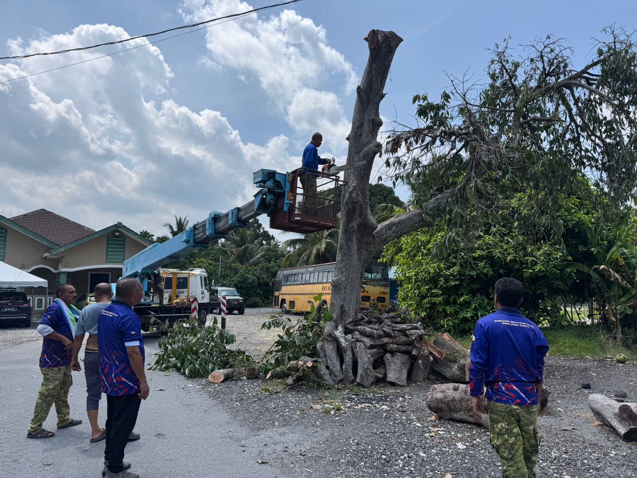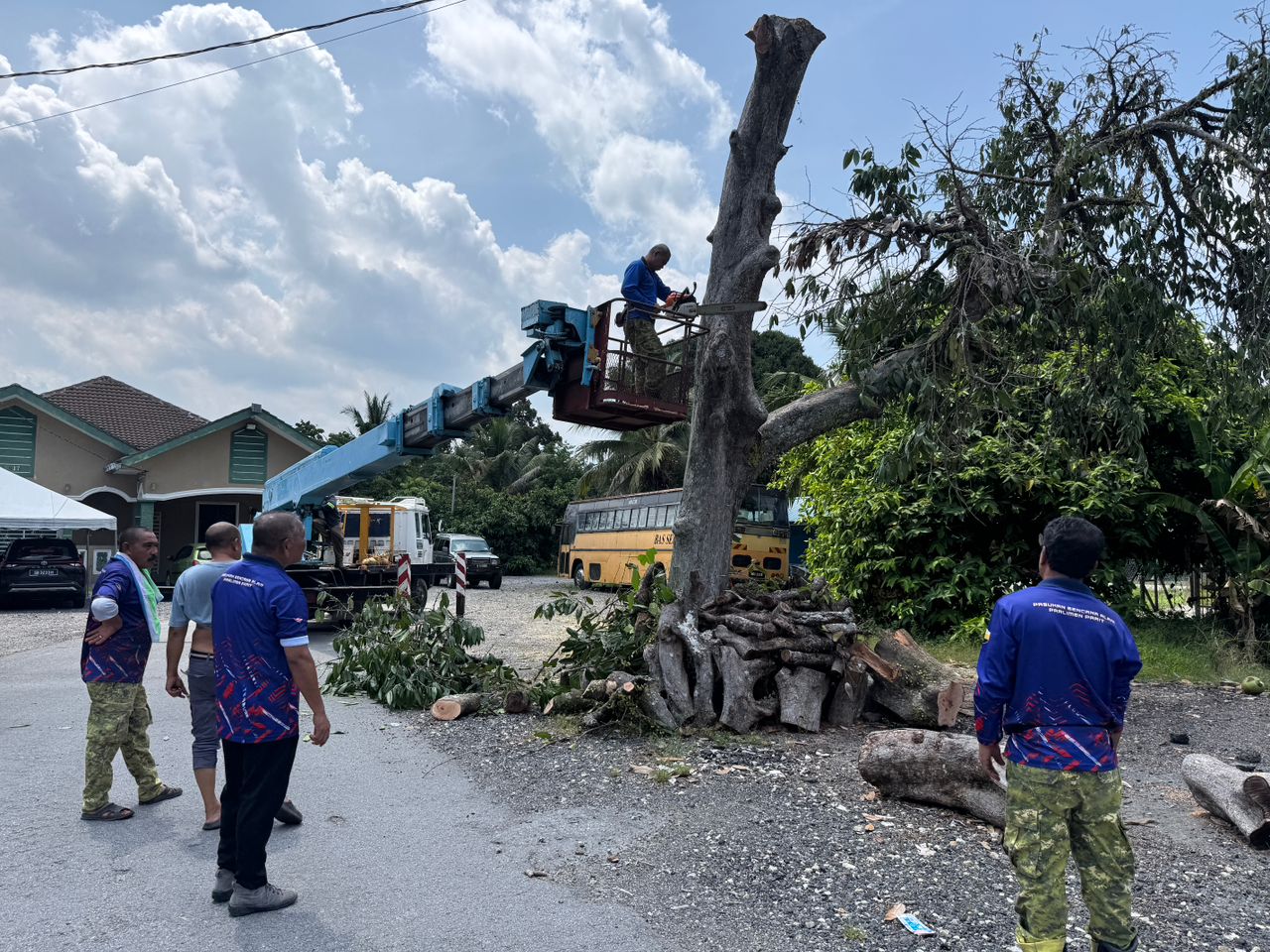 22 April 2026 (Rabu) @ Bersama Pasukan Sukarelawan Bencana Alam parlimen Parit Gotong Royong Menebang Pokok Di Kg Pasir Gajah,Parit